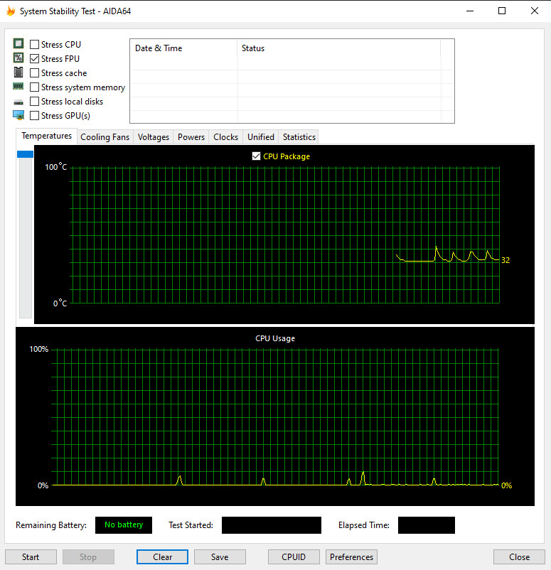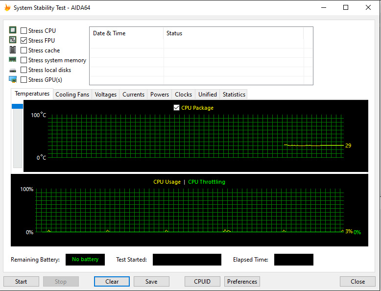 The system will idle for 5 minutes and test Stress FPU for 15 minutes thereafter.
