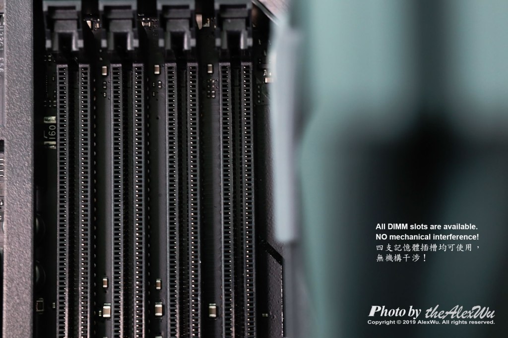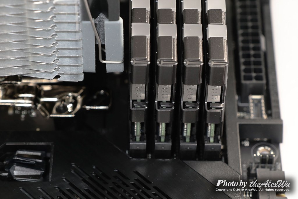I installed this cooler on ASUS Crosshair VIII Formula. It was really close but everything was just fine. I could install 4 memory modules and there was NO mechanical interference at all.