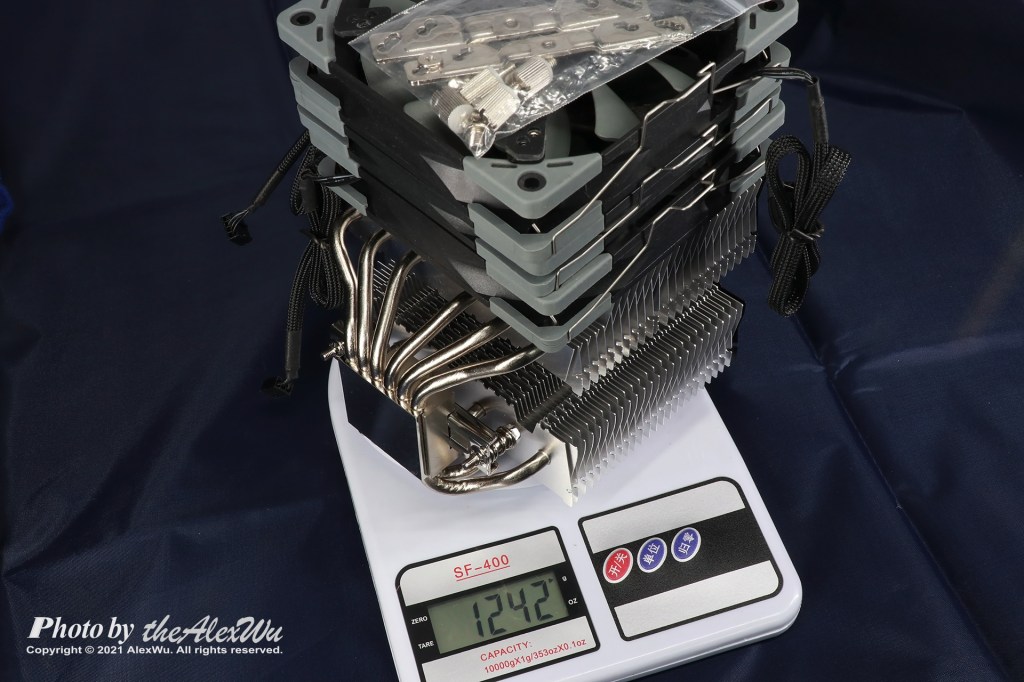 In addition, Fuma 2 is a heavy cooler. The default configuration of Fuma 2 is using 2 fans. Even with only 2 fans, the weight is reaching 1.1 kg which is heavier than a DeskMini X300, the barebone system from ASRock. And with 3 fans installed, the weight of the cooler has been over 1.24 kg. Personally, I have concerns to install such a heavy cooler on my motherboard. There’s nothing wrong, but I just don’t like the weight.