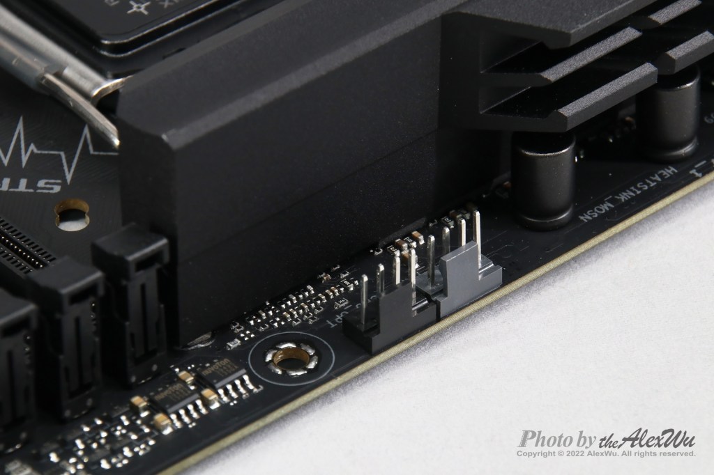 The fan header, which has a different color from others, is for the CPU cooler. Totally, you’ll find seven fan headers on the board.