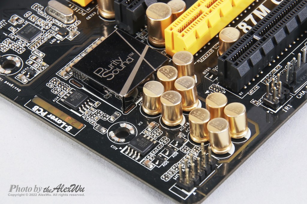 For now, the only electrolytic capacitors on the motherboard you will see is for the Audio chip. It is believed that the electrolytic capacitors can provide better audio quality than the solid capacitors. My ears are far from the level which could tell the differences, but people said so. However, before that, there was a time that motherboard makers were all promoting the “all-solid-capacitor” feature. Even it was for the audio chip, the capacitors are all solid capacitors. ASRock Z87M OC Formula is exactly the perfect example that tells the story.